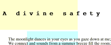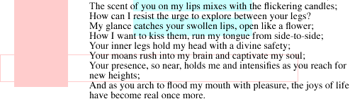 (RAW TEXT VERSION FOR CUT/PASTE) A divine safetyscent of you on my lips mixes with the flickering candles; | ||