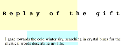 (RAW TEXT VERSION FOR CUT/PASTE) Replay of the giftds describing my life; | ||
